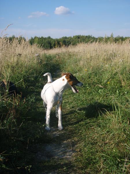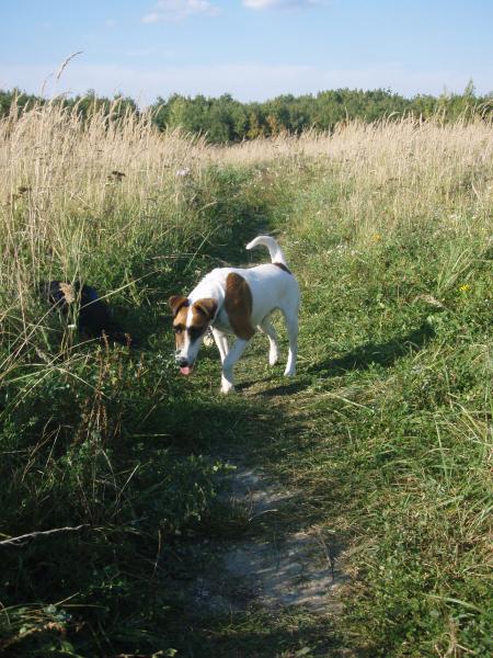 Včera jsme potkali sestru Endyho na naší oblíbené psí louce. Trénovali jsme, probírali kde co, bylo to fajn. Sice to nebylo snadné, ale pár fotek jsem udělala.