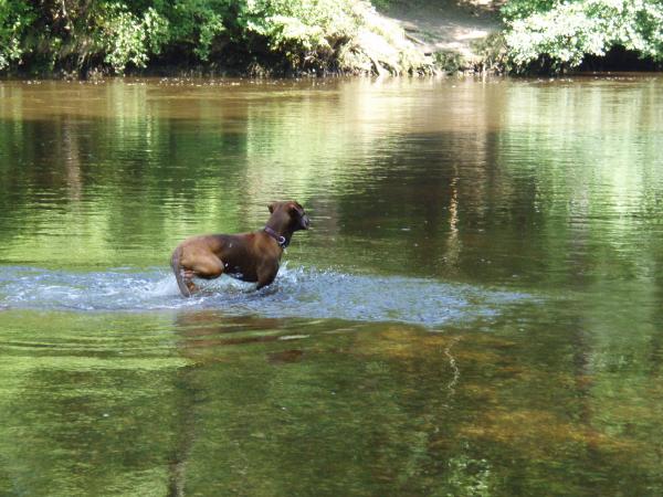 No a abych Vendelína unavila (aby neměl tolik energie na pískání), vytáhla jsem kolo a vyrazili jsme na hodinový výlet spojený s koupáním. Jenže unavit tak hyperaktivního psa není tak jednoduché, jak jsem si myslela, ani běhání ve vodě ho nezdolalo. Ale úspěch je, že začíná pomaloučku polehoučku plavat, a tak překonává strach ze štěněcího věku, kdy spadl do vody.