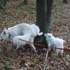 Asi po měsíci, který proběhl bez jakéhokoliv náznaku agresivity, jsem holky začala brát společně i na venčení. Nejprve s náhubky a vodítky a v malém množství psů - maximálně ve čtyřech celkem. Postupně jsem je na střídačku pouštěla i z vodítka. Ale nikdy společně, vždy jedna na vodítku a druhá na volno s ostatními psy.